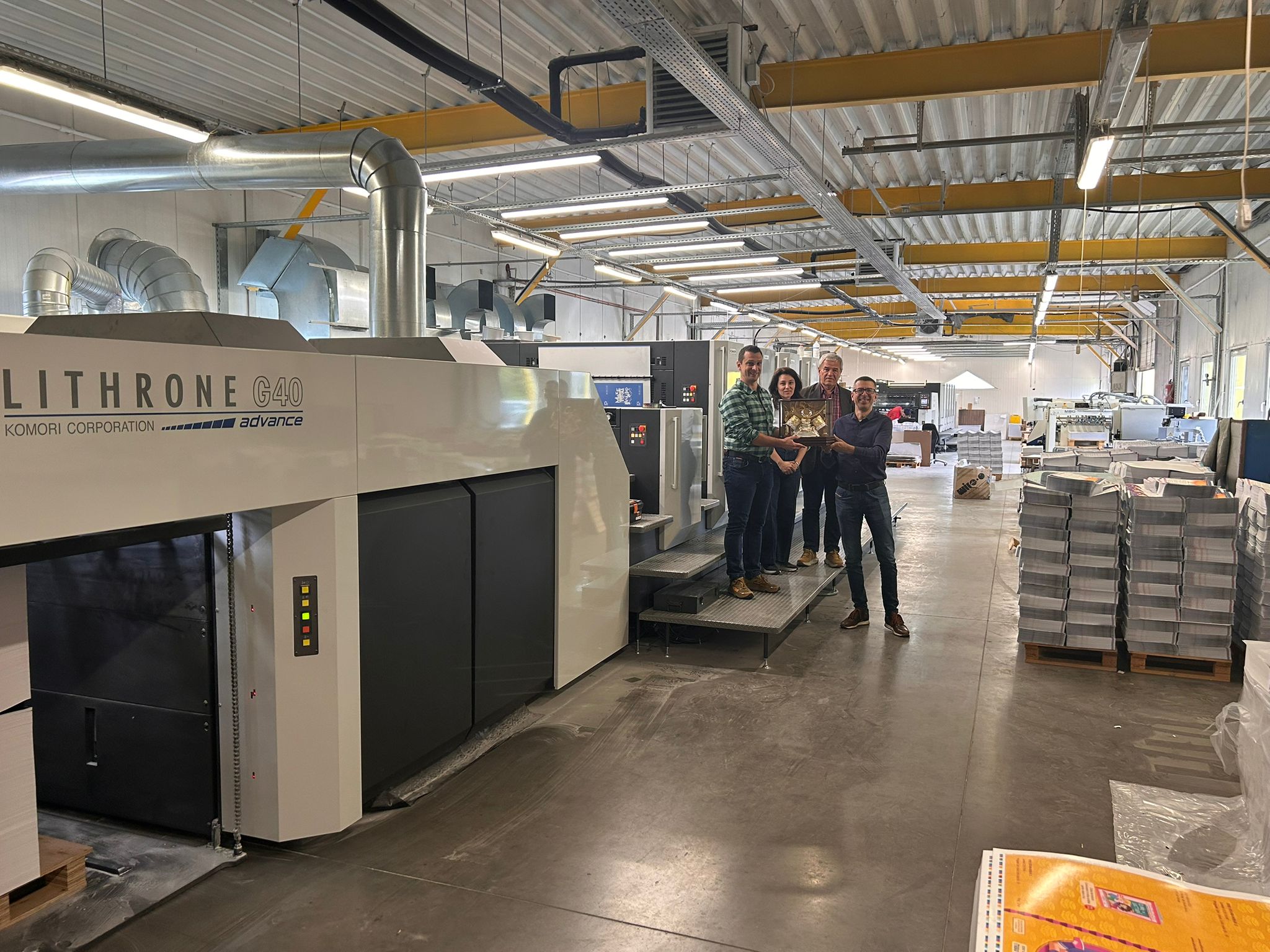 In 2020, under the ownership of Mr. Vasile Ormenisan, together with Adrian and Roxana began an ambitious five-year investment programme, building a new production facility and acquiring state-of-the-art equipment. This plan concluded in 2025 with the installation of the Komori GL-540 advance with coater, alongside a new folding machine and cutting line.